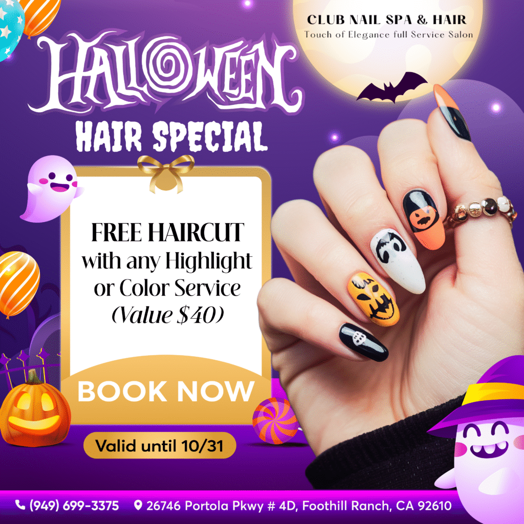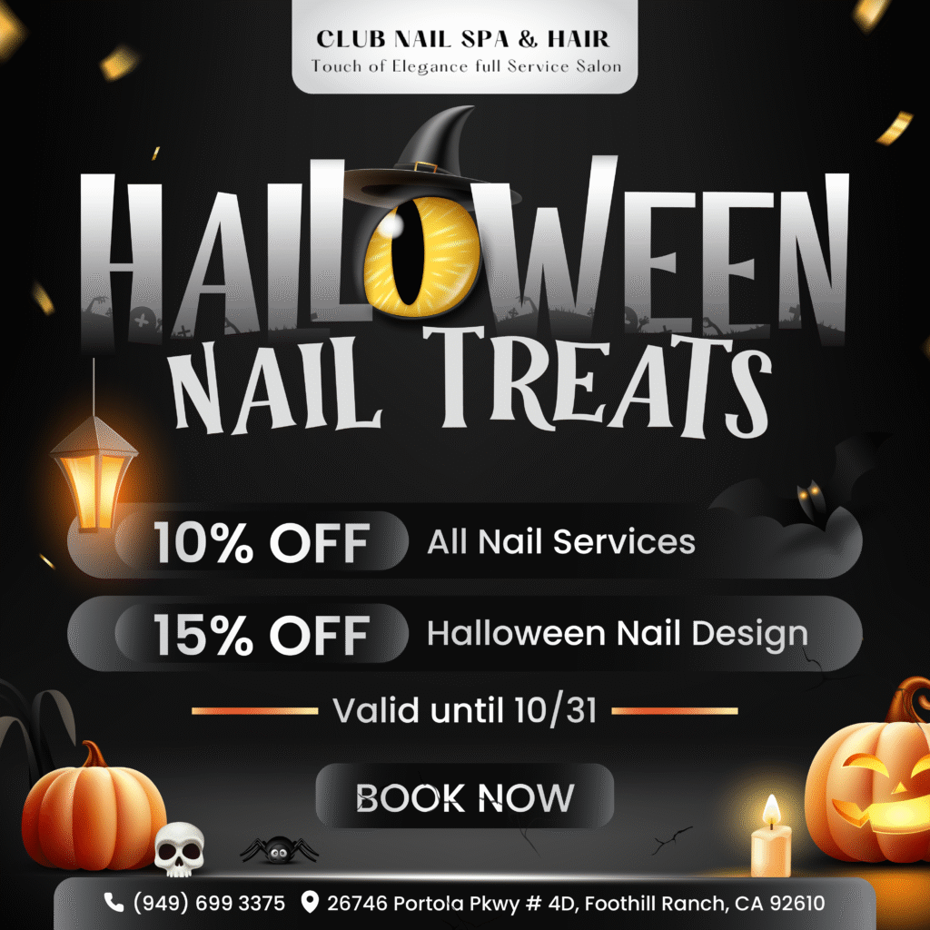 Club Nails Spa & Hair located at 26746 Portola Pkwy # 4D, Foothill Ranch, CA 92610, we offer a full range of services to help you look and feel your best. From manicures, nail enhancements, and pedicures to haircuts, color services, and eyelash extensions, we have everything you need for a complete beauty experience. Our Mini-Me services for kids, along with waxing, skincare, and permanent makeup, ensure there’s something for everyone. We also specialize in Fibroblast skin tightening and offer private mani-pedi sessions, as well as services for bridal showers and birthday parties. Visit us for a relaxing, rejuvenating experience with top-quality care.